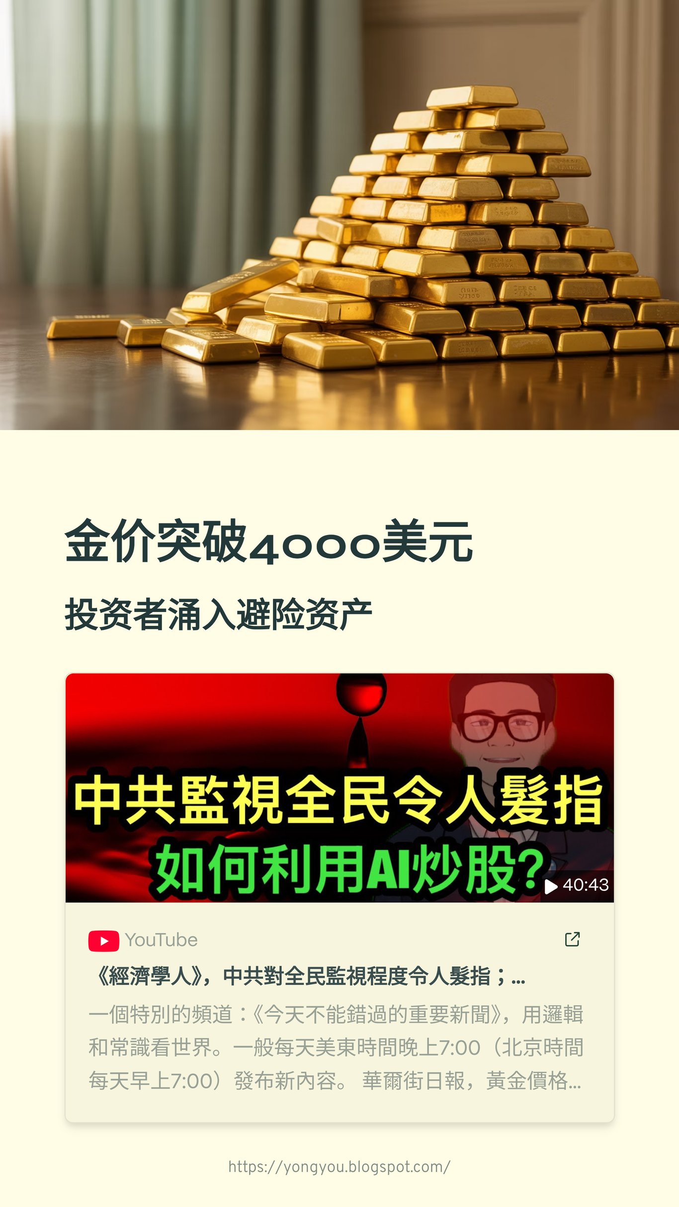 # 10月8日要闻|“货币贬值交易”席卷市场、黄金破4000;加沙谈判冷热不一;美政坛三件大事发酵