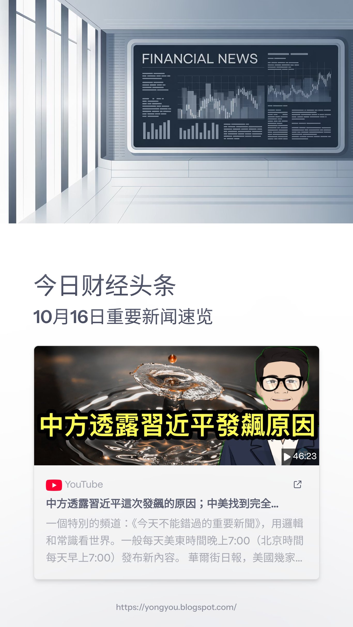10月16日|全球财经与中美博弈焦点:稳定币监管、美国银行财报、鲍威尔信号与贸易风云