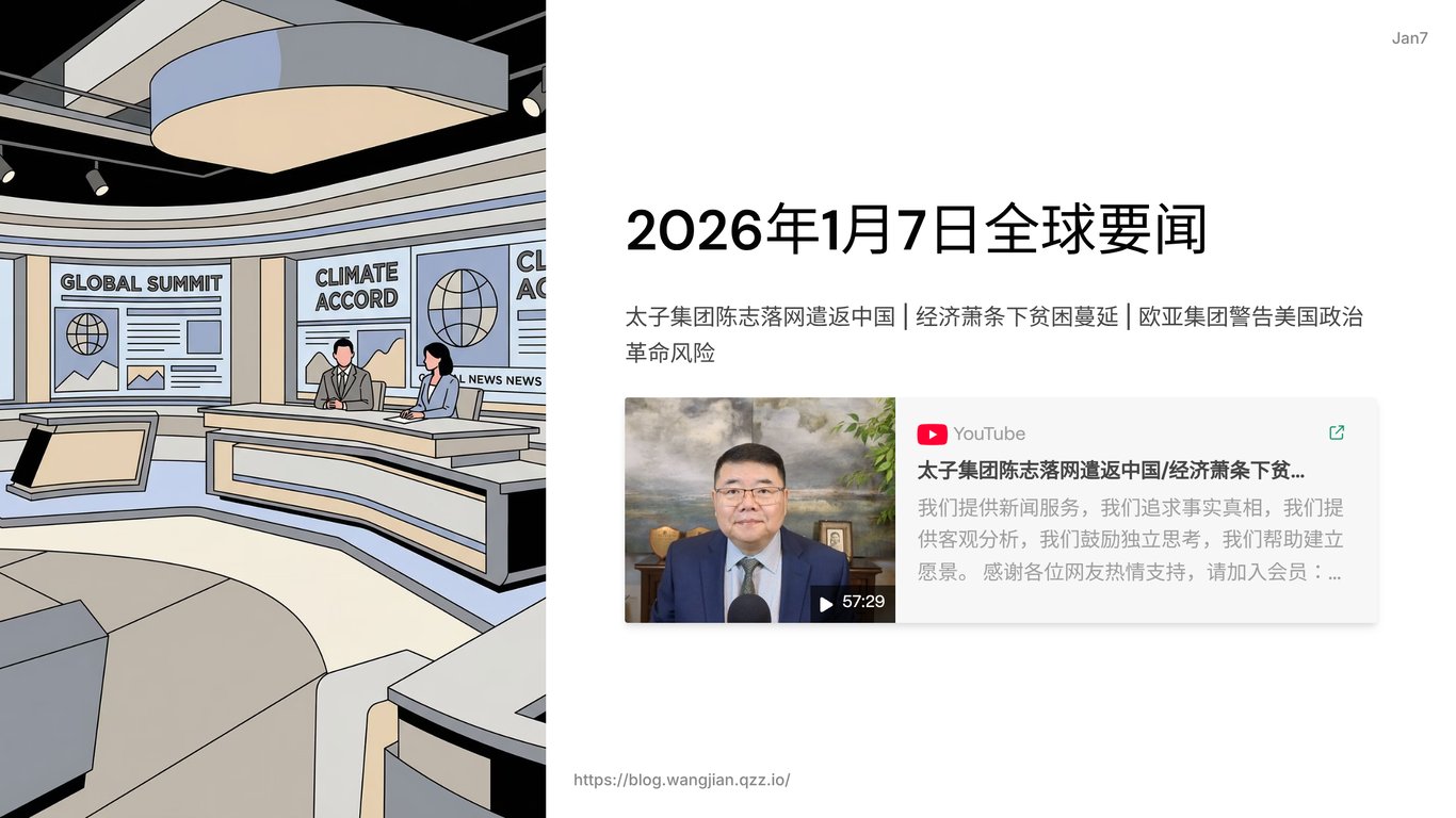 太子集团陈志落网遣返中国/经济萧条下贫困正在中国社会蔓延/欧亚集团:2026首要风险是美国政治革命/王剑每日观察/20260107