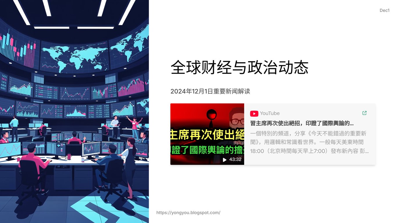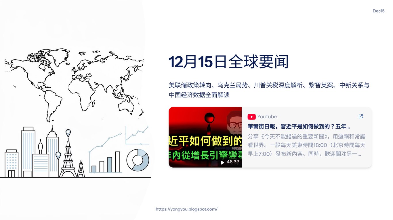 12月15日新闻:美联储政策转向?乌克兰局势新动向,川普关税深度解析,黎智英案与中国经济数据