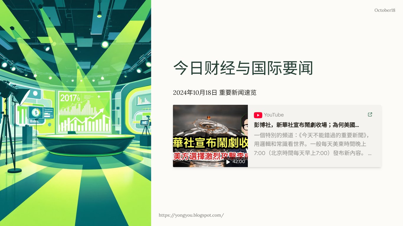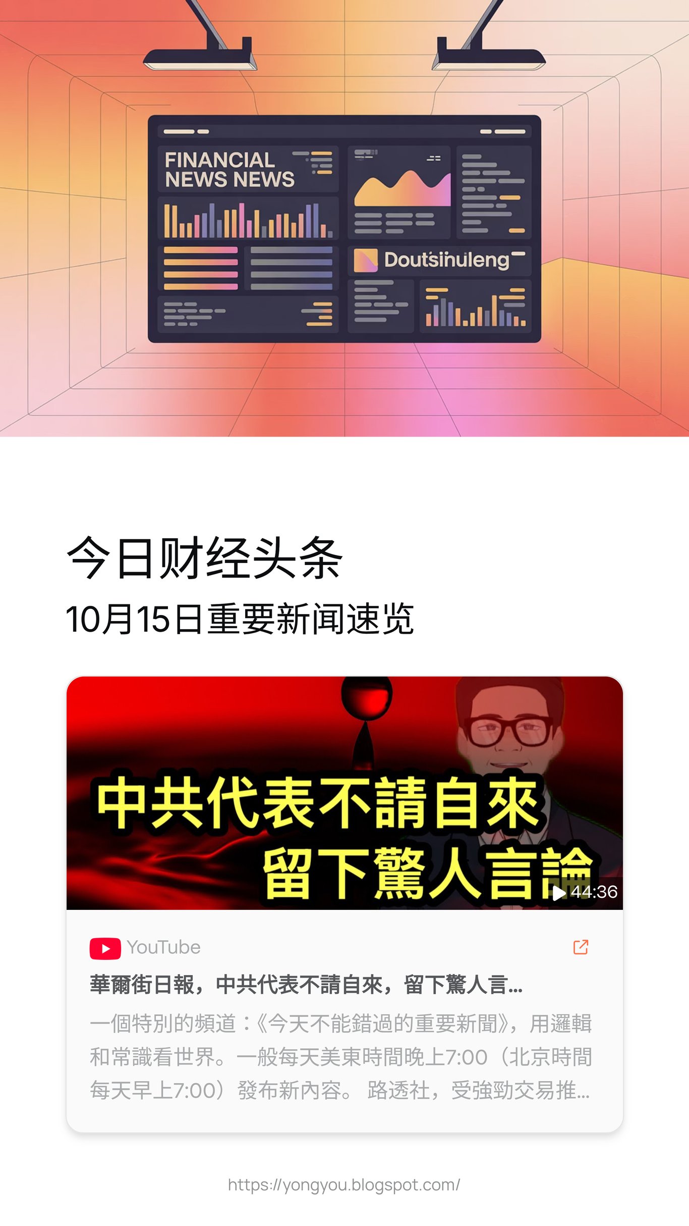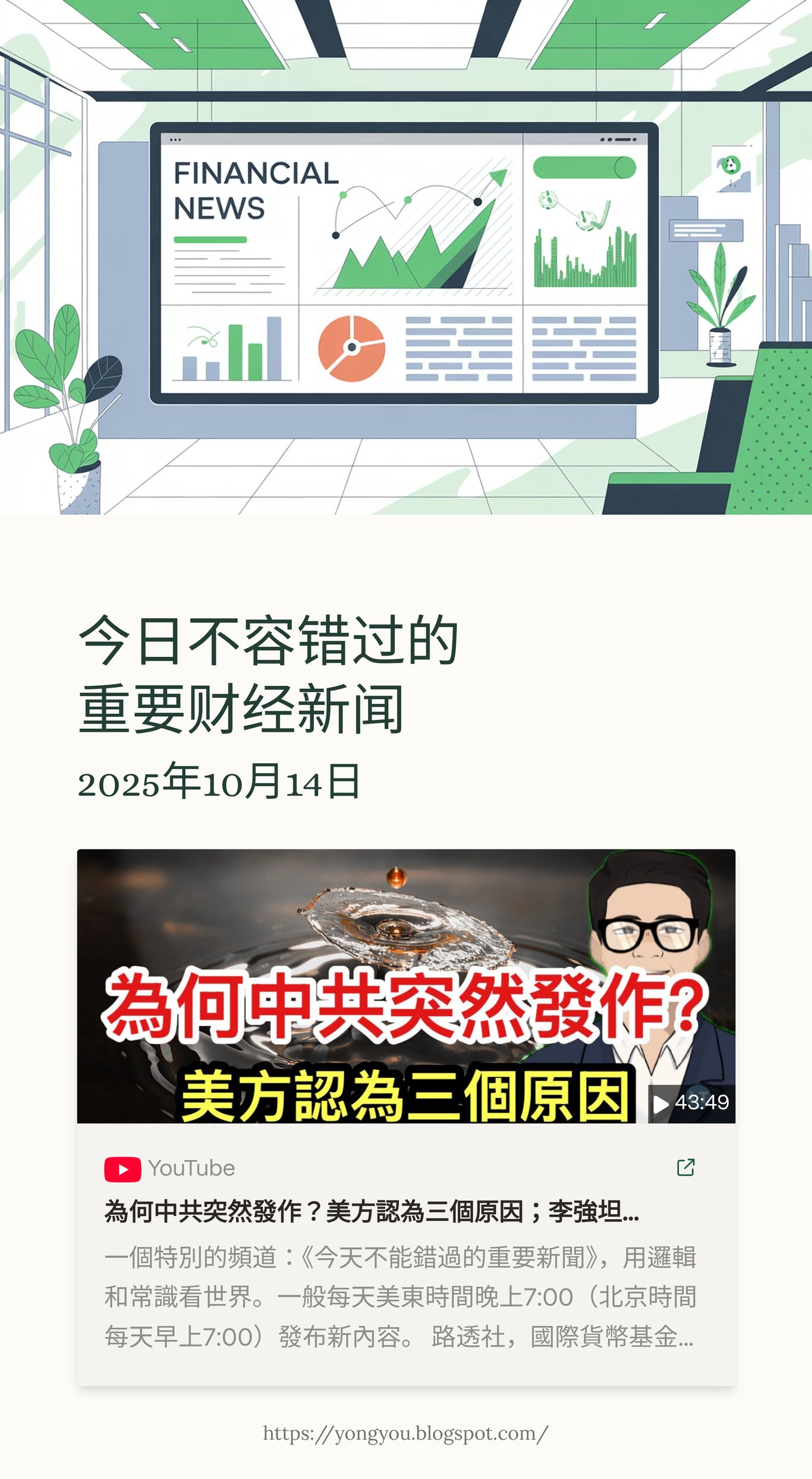 10月18日财经与国际新闻观察|华尔街再度恐慌、川普劝乌停战、郑丽文赢得国民党选举
