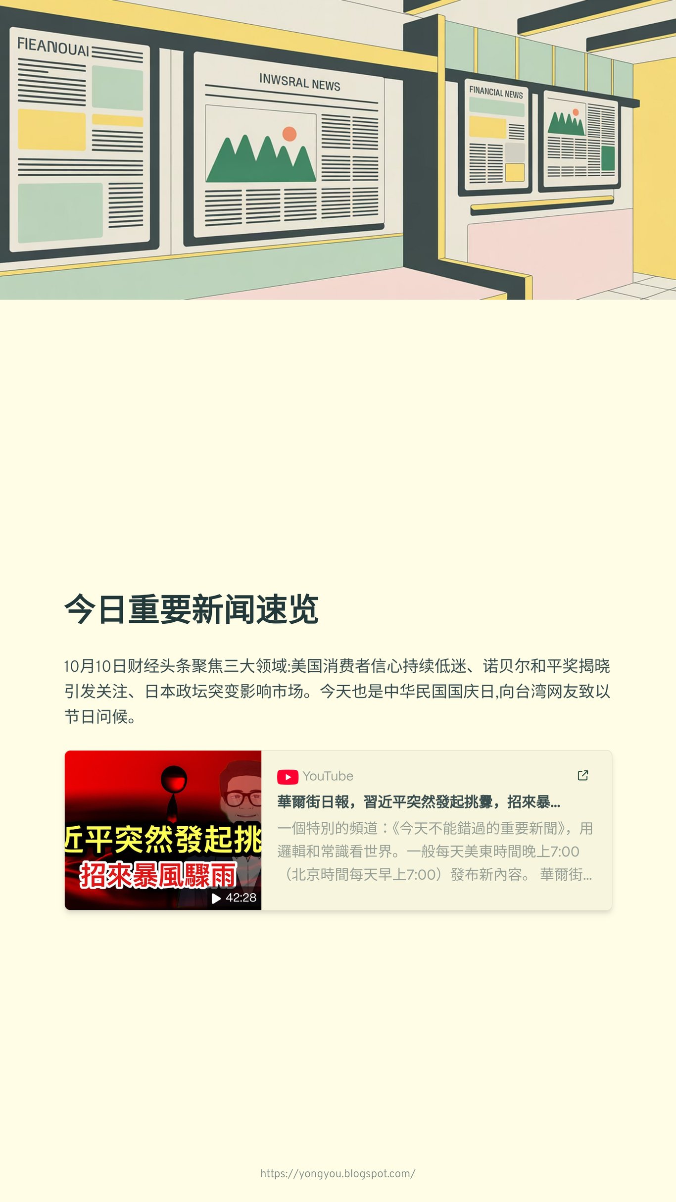 本周的关键线索集中在五个宏观节点:美联储9月纪要、密歇根消费者信心、可能被“集中补发”的美国宏观数据、日本央行在新首相上任前后的利率取向,以及台湾通胀与贸易读数。与此同时,围绕特朗普团队经济叙事的重构、中东停火谈判的“全案先于停火”路径、乌方关于中俄情报协作的指控、日本政治更迭的政策含义,以及中国舆论场的几则…