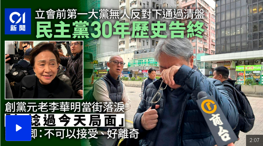 台灣總統彈劾悼香港立法會前第一大黨30年清盤