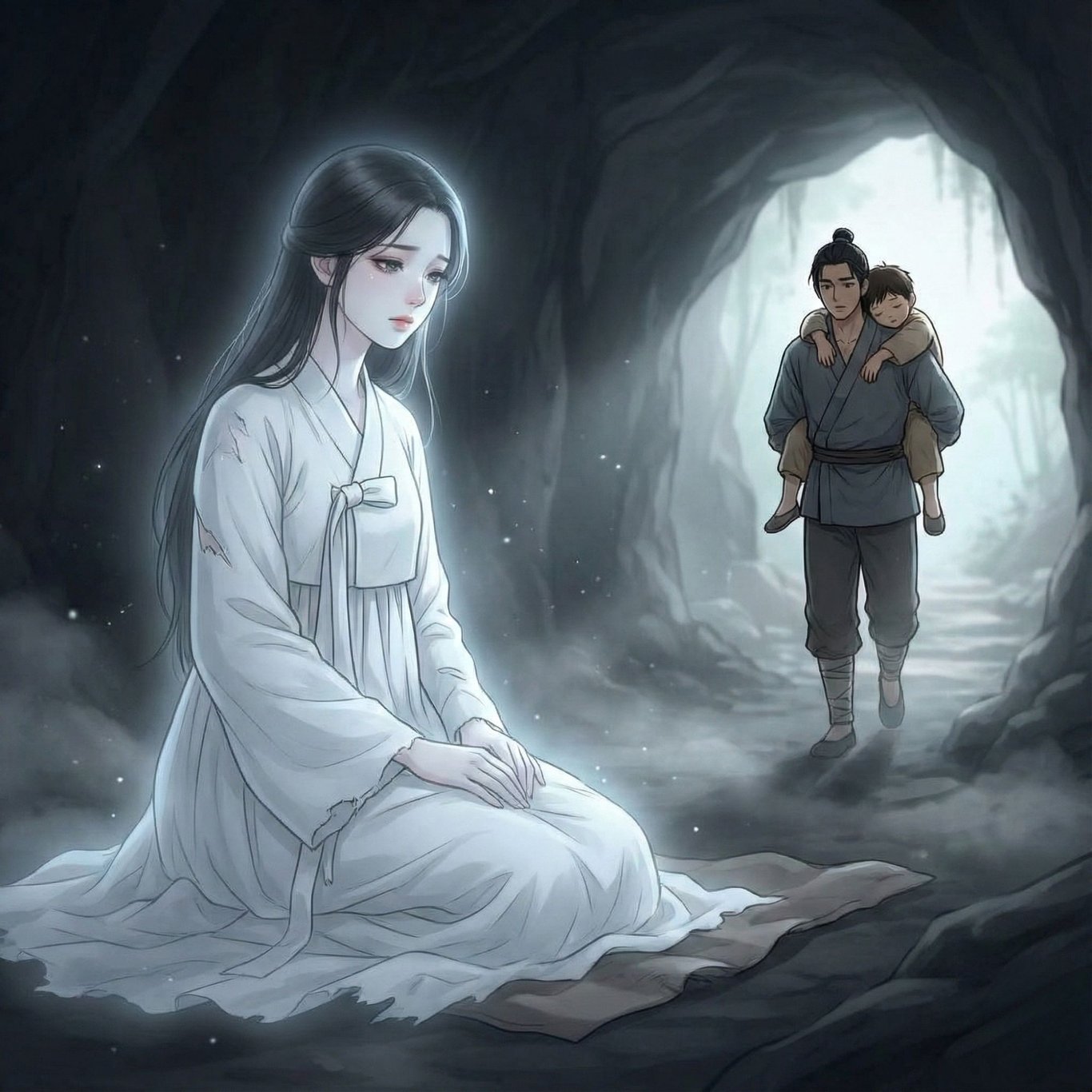 胸口那股刺眼的光芒來得快,消失得更快。像心跳慢慢平息一般,白色光澤一寸寸退回沈硯胸骨深處,只留下微微發燙的餘韻。洞裡重新變暗。只有山壁反射著一點微光,和眼前那個跪著的女子……呃……一個楚楚可憐的“女鬼”。
