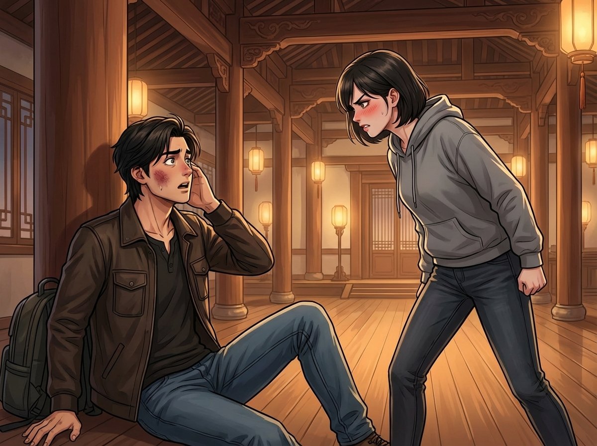 偏廳裡的氣氛,明顯沉了下來。沈硯坐在一旁,半邊臉還隱隱發麻,整個人處在一種「搞不清楚狀況卻已經先挨了一拳」的狀態。那名短髮少女——魏言晴,此刻站在偏廳一側,雙手不太自然地垂在身前,臉上的怒氣早已退去,只剩下幾分尷尬與歉意。她張了張嘴,像是想說什麼,最後卻又閉上。白妤已經回到偏廳內。她沒有多話,只是取來一小罐藥膏,在沈硯…