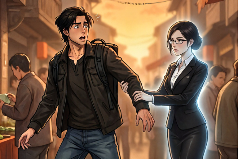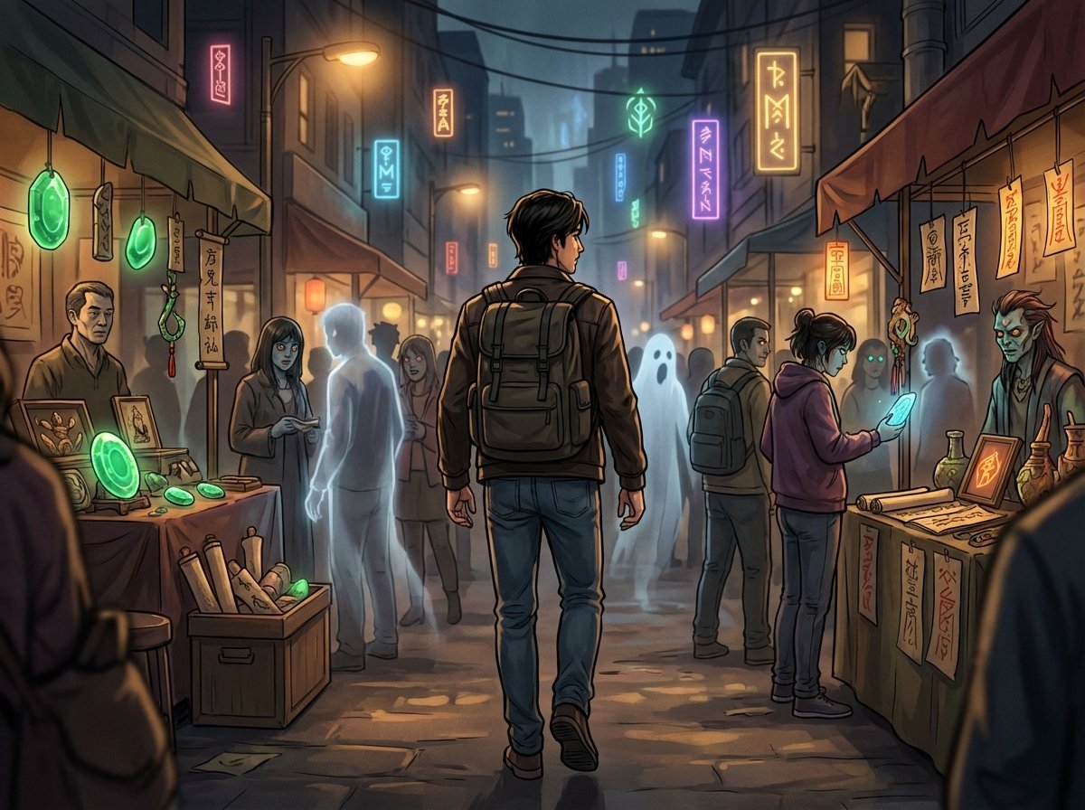老頭的聲音不高,卻像一枚釘子,穩穩敲進沈硯耳裡。沈硯喉嚨動了動。想說話,卻發現聲音卡在胸口,怎麼也擠不出來。因為那隻手,還扣在他手臂上。纖細、冰涼、力道卻異常穩固。不是用力勒住,卻讓人完全無法掙脫,像是被什麼「規則」限制住了一樣。他下意識又試著動了一下。