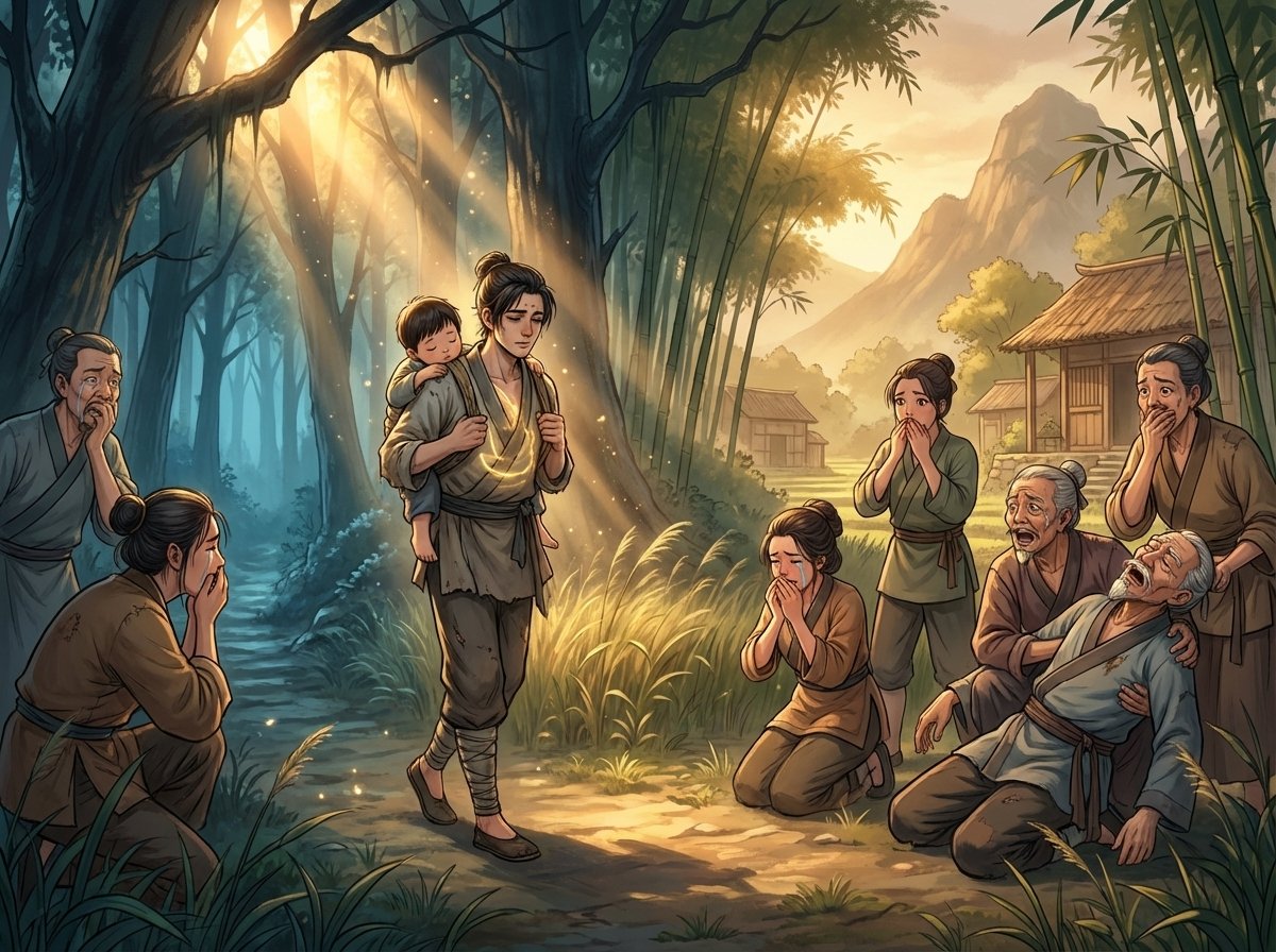 沈硯背著熟睡的小寶,一步一步踏出女鬼林。林外的光線比想像中刺眼,讓他眼睛微微眯起。風重新流動,帶著正午的溫度,吹散了衣袖上沾著的陰冷。但比起外頭的暖意,他心裡那一團疑惑反而越捲越緊。——胸口的光。他低頭看了眼衣襟下,被布料遮住的地方。那顆白色碎片此刻靜得像不存在,連半點脈動都沒有。