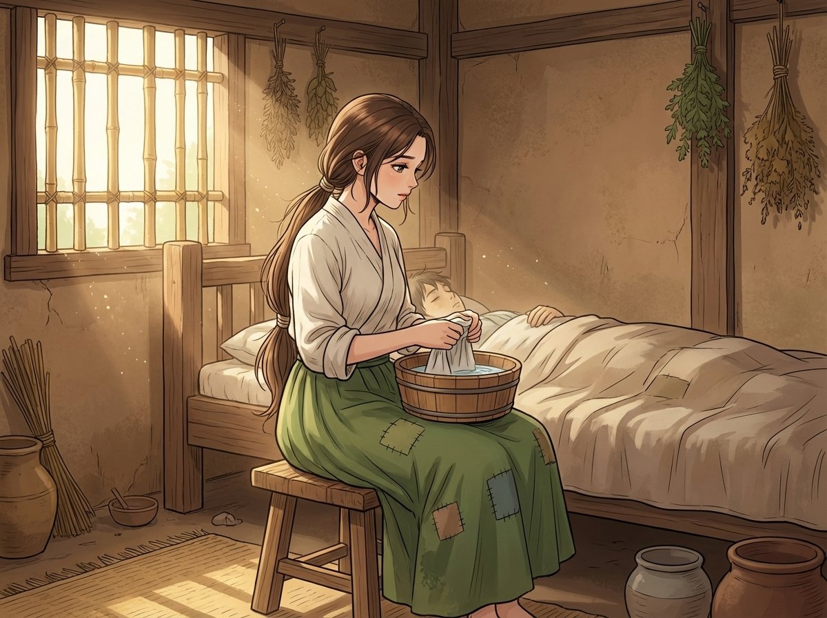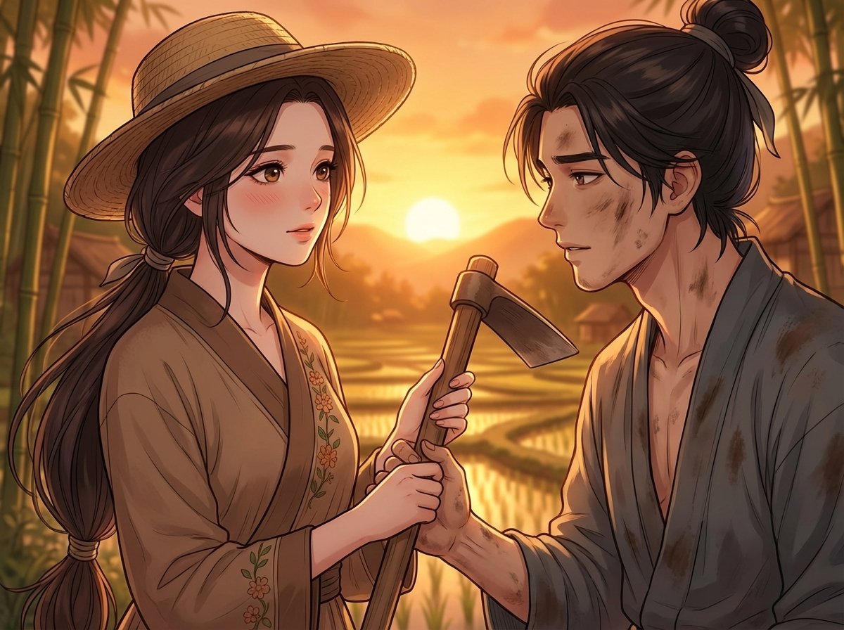 沈硯是被——安靜吵醒的。那是一種奇怪、陌生、不屬於新埔市的安靜——沒有機車聲、沒有電線杆的嗡鳴、沒有吵架聲,也沒有樓上鄰居摔椅子的悶響。只有鳥鳴、晨風,還有柴火輕微的劈啪聲。他睜開眼,看見昏黃木梁、粗糙土牆,再往旁邊一偏——竹格窗透進來的,是柔和而乾淨的晨光。
