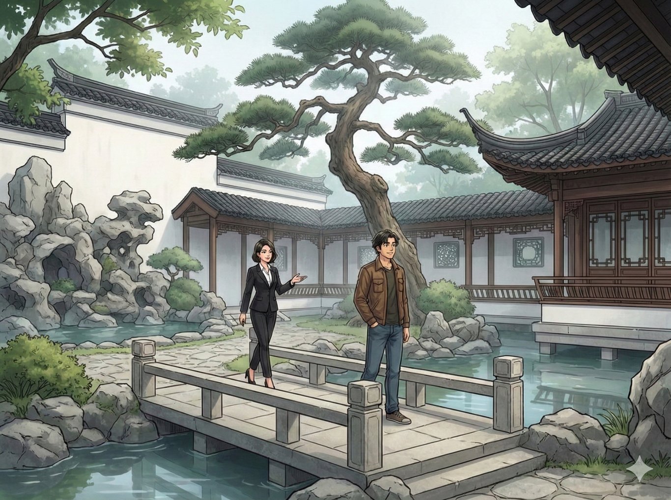 涼亭內,茶香裊裊,卻掩不住漸漸凝重的氣氛。面對沈硯關於五年前真相的追問,魏承序沒有立刻回答。他只是深深地嘆了一口氣,那口氣彷彿吐盡了這五年的滄桑。老人的手指輕輕敲擊了一下石桌的桌面。「小妤,出來吧。」
