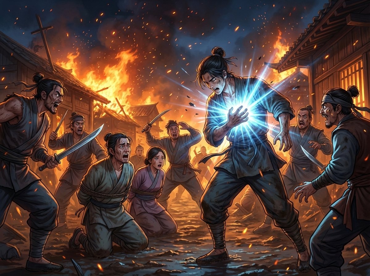夜色被焚村的火光撕裂,煙霧翻卷,熱浪像要把空氣都烤皺。沈硯拖著阿筠與阿樺,跌跌撞撞地衝向村北的黑暗森林。女鬼林。一個連白天都沒人敢靠近的地方。但此刻——那是他唯一能逃的方向。沈硯胸口還在劇烈跳痛。碎片像嵌在心臟上的熾熱刀片,燙得他手腳發麻,視線模糊。但他不敢停。不敢回頭。阿樺被他拉著,喘得快哭出來:「仙門哥哥……這邊……這邊…