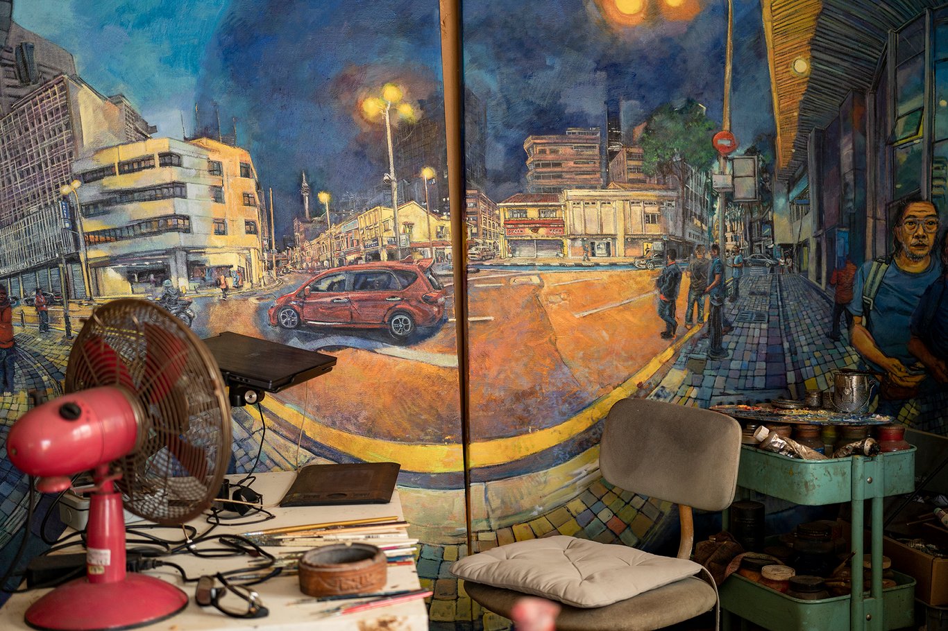 2021年底,封控剛過,我畫了五幅皮革畫在吉隆坡展出。展覽名為 #Tomorrow,畫的是威尼斯水災,開幕翌日,吉隆坡也淹了。巧合一再發生,我開始害怕自己的畫會成真。不說不想,災難仍照樣發生。這並非預感,而是因果。若膽怯,就會被吞噬。