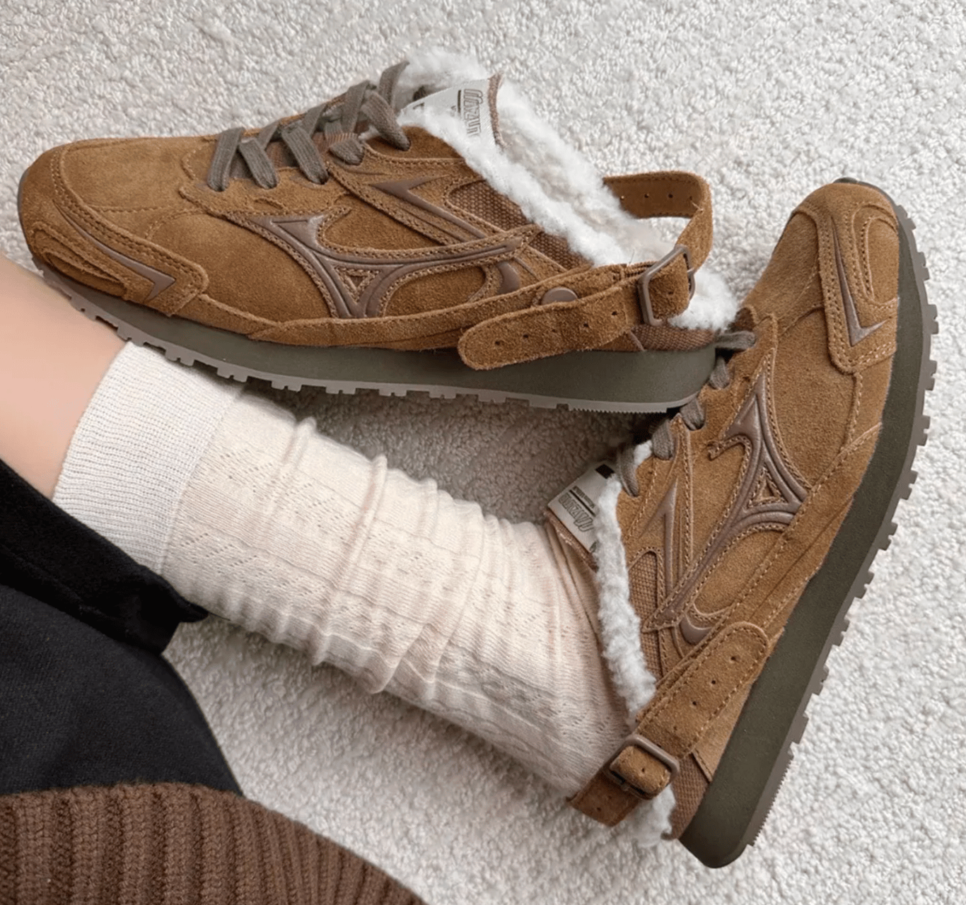 呢對 Mizuno LG 60S Slipper 走低飽和復古路線,麂皮感鞋面配毛毛內裡,視覺上已經暖笠笠。當 Mizuno 刷毛 穆勒鞋 去襯牛仔褲、卡其褲或工裝褲都唔會突兀;想做乾淨日系,Mizuno LG 60S Slipper 穿搭 可以用白襪+直筒褲,簡單就有層次。作為 Mizuno 絨毛 拖鞋,舒服度高之餘都夠上鏡
