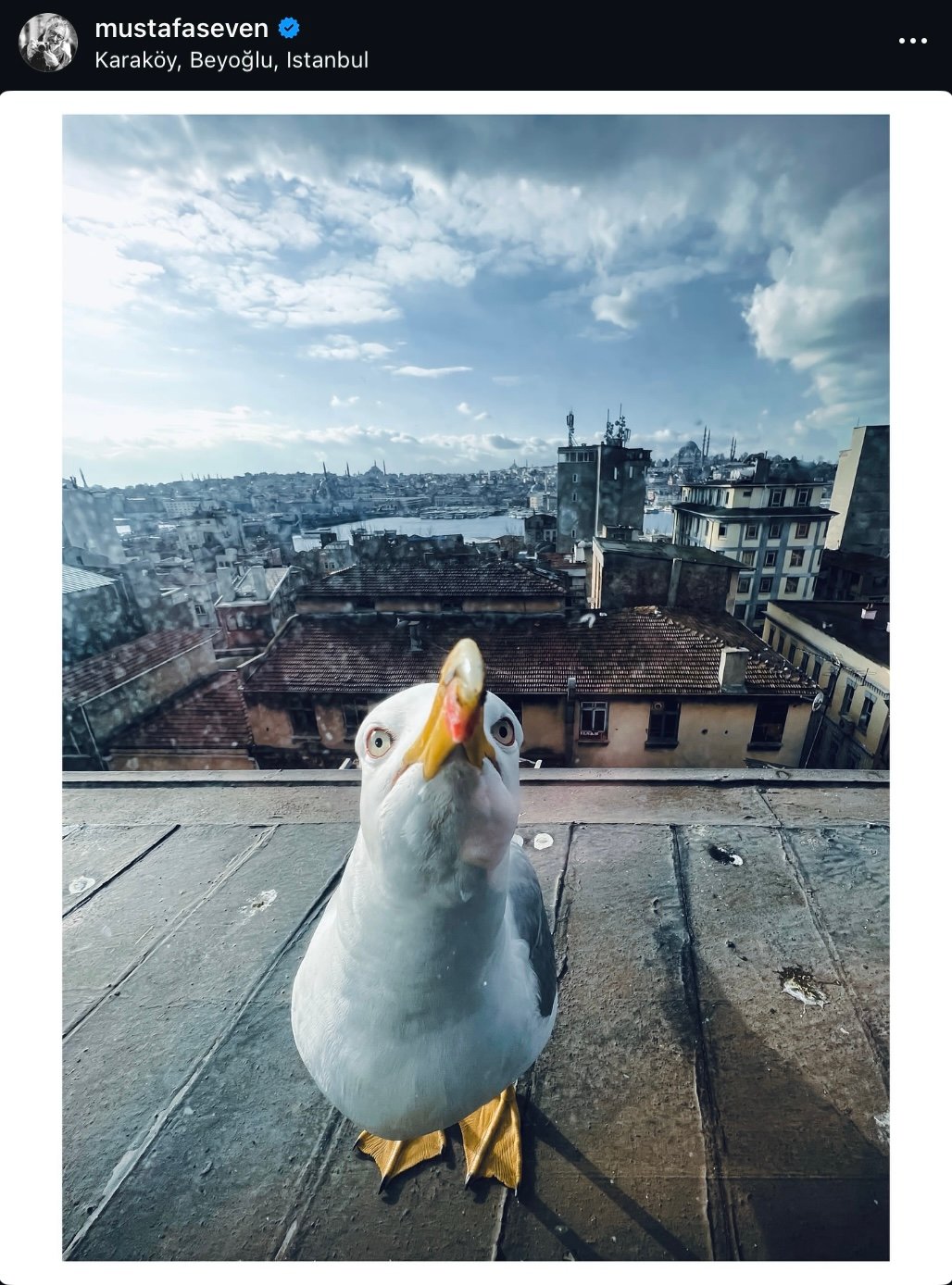 很多伊斯坦布尔情侣第一次约会会说:“Vapurla karşıya geçelim.”(我们坐船去对岸吧。)从欧洲到亚洲,坐一趟轮渡需时20-30分钟。吹着海风,喝杯红茶,掰一点simit喂海鸥,这段不长不短的时间,正是慢慢攀谈的好机会。Vapur(轮渡)martı(海鸥)çay(红茶)是伊斯坦布尔的爱情文学里常出现的三个词,它们构成这座城市最日常、也最浪漫的背景。在 Instagram 上,我还关注了一位很会捕捉光影的摄影师,他记录下无数精彩的瞬间📷