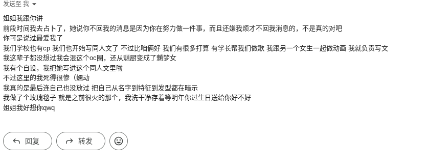 梦到了一句话:你会不会杀死海棠花 开屏雷击 这个神秘东北同学又在干什么天啊 求求了我们没有这么好好吧 这位亲我求求你了 你礼物我不要了我们两清谢谢 太神秘了 我们都不在一个学校都开始新生活了就拜拜好不好 救命 反正过个两三年就把她拉黑了 现在留着可能就是想知道这个亲还能做什么妖吧 嗯 有没有人觉得作妖这个…