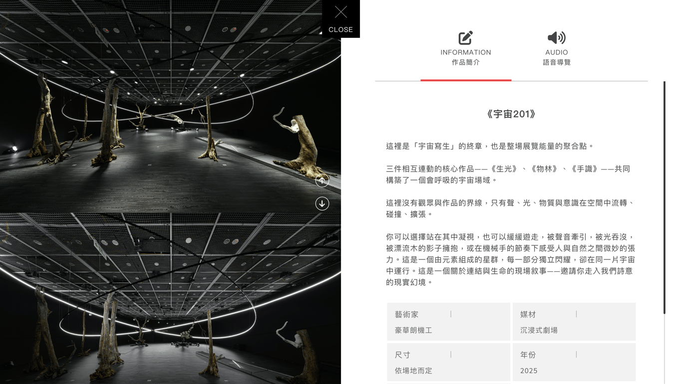 本週課程老師帶我們去參訪了豪華朗機工的個展「宇宙寫生」,此次展覽的核心以「生命、科技、藝術」三者之間的連結為主題的創作展覽,展現豪華朗機工「萬物皆連結 It’ s all connected」的藝術理念。展覽以跨域藝術來探索與倡導一種持續的、和諧的共生方式,透過沉浸空間、跨媒體裝置和生成式技術,人類在宇宙中與自然和科技的詩意連結,希望喚起觀眾…