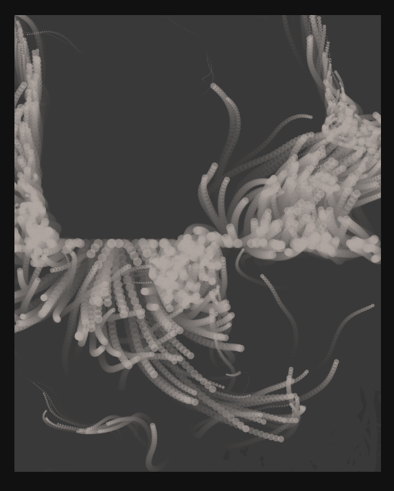 對於粒子這週的印象一直停留在寫程式改程式,對於中間修改過程的印象有點薄弱,印象中是從線條的流動逐漸變成點的流動,最後加上了滑鼠的互動,不過程式碼實在太複雜了,有時候會不知道改了這個參數是改在哪,或是想變化但不知到要從哪一行改起!!所以這週的作品其實和老師教的沒有什麼太大變化😖 其實對於生成式藝術好像…