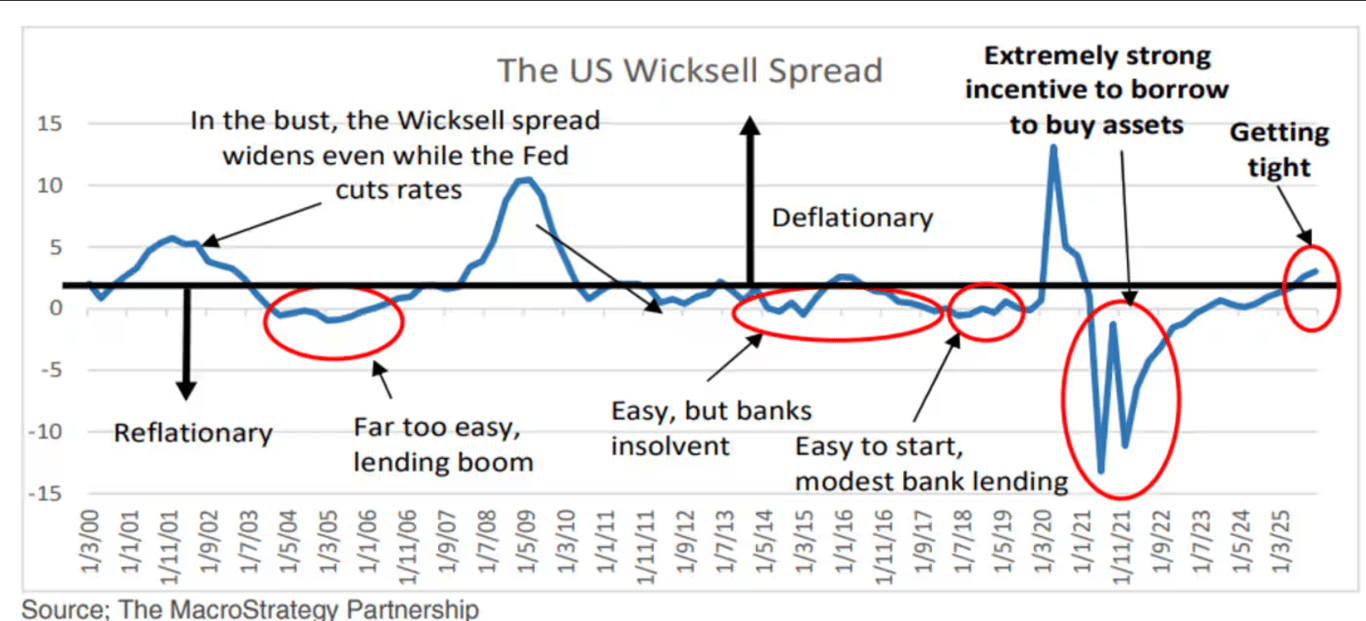 MacroStrategy Partnership 的分析師借鑑了瑞典經濟學家 Knut Wicksell 的理論。他的核心洞見在於: