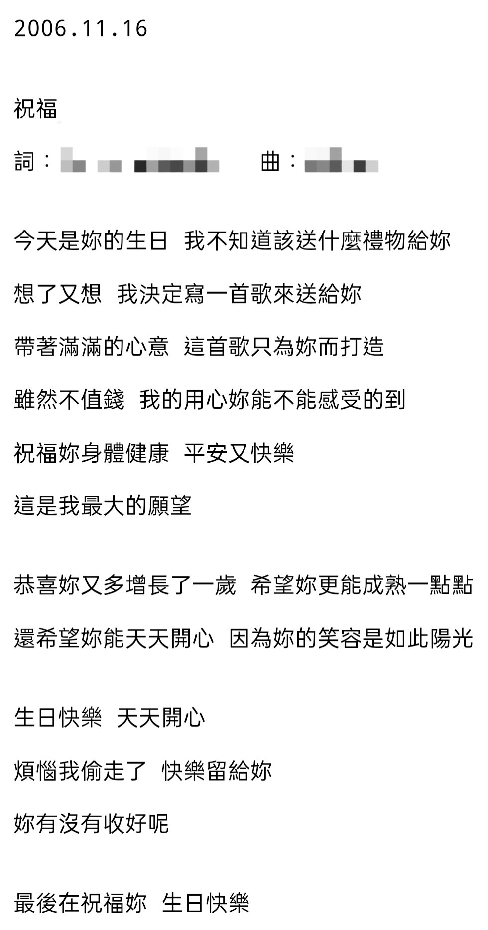 最後再祝福妳 生日快樂
