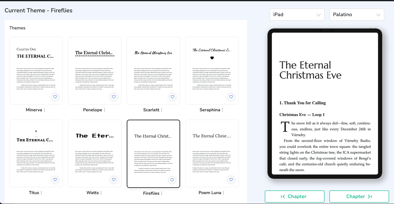 接著是排版。我使用了 Atticus 來製作 EPUB 和紙本內頁。這個工具也是自出版行業比較常用的工具,它並不難,效果也很好。不過實際操作的時候倒是會遇到很多細節問題,比如不同閱讀器對段落縮排和字距的呈現差異,章節標題在預覽時偶爾會跑位,有些符號在轉檔後顯示不穩定。我常常一邊預覽,一邊回到原檔修正,再重新輸出。這是一種很不像寫作、卻非常像和機器協商的工作。