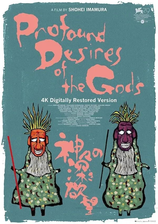 第一次在大銀幕看今村昌平的作品,之前把他的25部作品外加《草瘋長》的自傳看完後就感嘆其牛逼,對於人類和社會的思考在整個電影界也是獨一份的存在。這部《諸神的慾望》是今村昌平的第10部作品,在之前他拍出了《豬與軍艦》、《日本昆蟲記》等探索人類慾望和邪念的電影。在這部將近3小時的電影中,今村愣是寫下來一大長篇關於人類社會發展的“論文電影”。雖然這張票是在第一排,脖子很難頂,但是依然沈浸其中。
