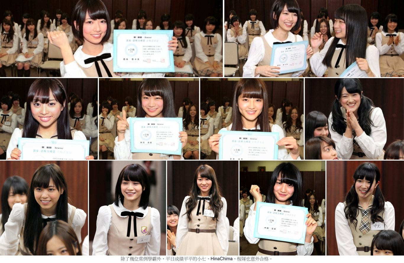 此前23名一期生於6月接受詞彙及閱讀理解能力3級檢定,結果公報,當中17人考獲合格,其中成績最好為秋元真夏,第二名則屬橋本。