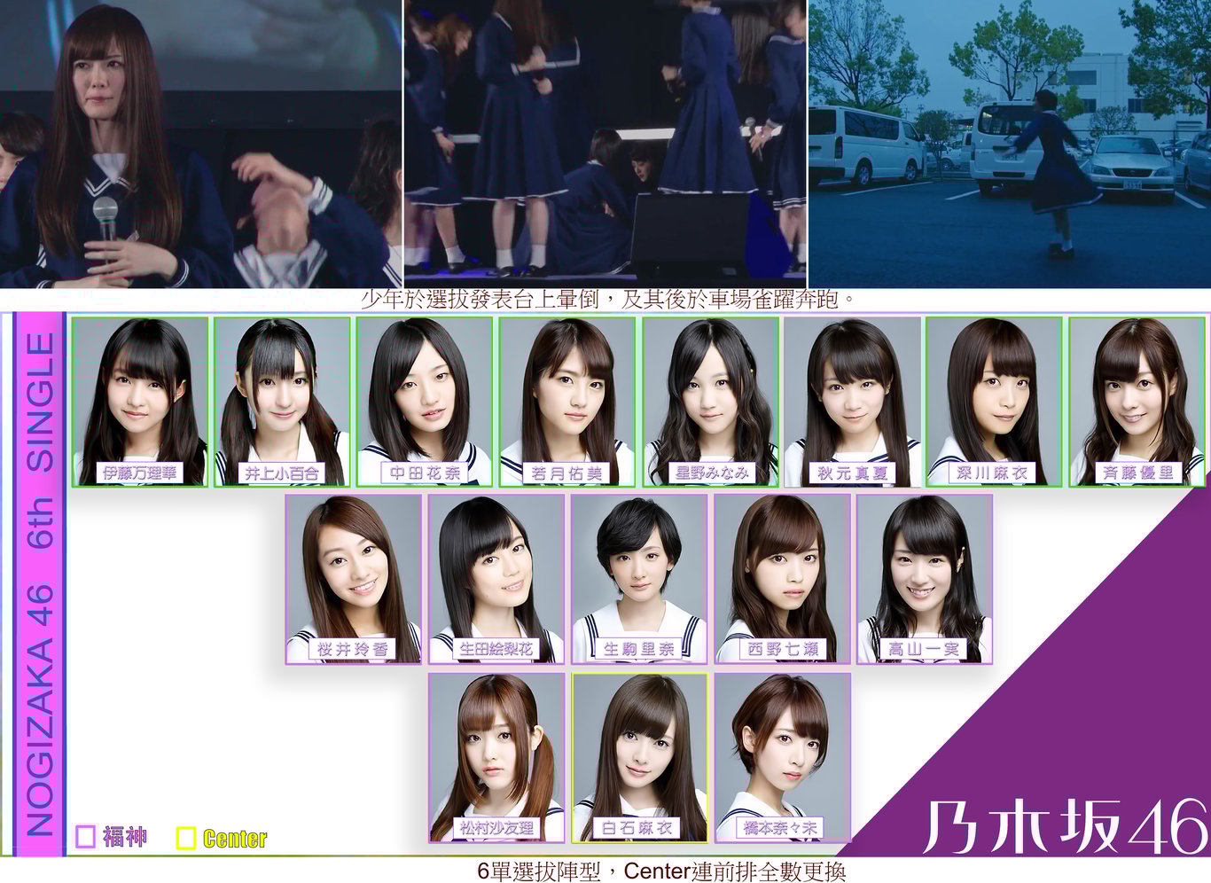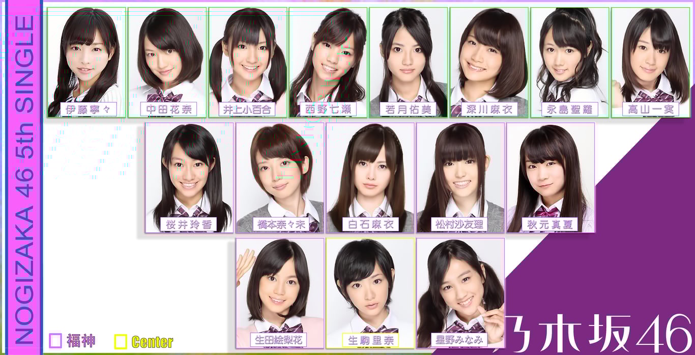 (後排左起)鈴木絢音、堀未央奈、新內眞衣、山﨑怜奈、西川七海、伊藤純奈
