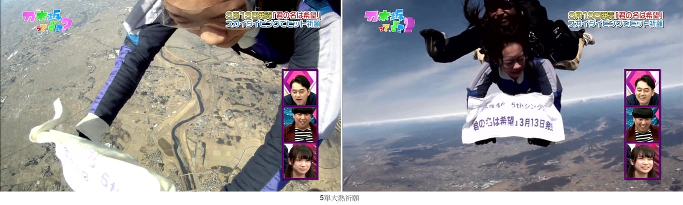 播出「6單大熱祈願」,活動為隊長於群馬進行崩極跳。這是歷來首次於單曲發行後才播出的大熱祈願。