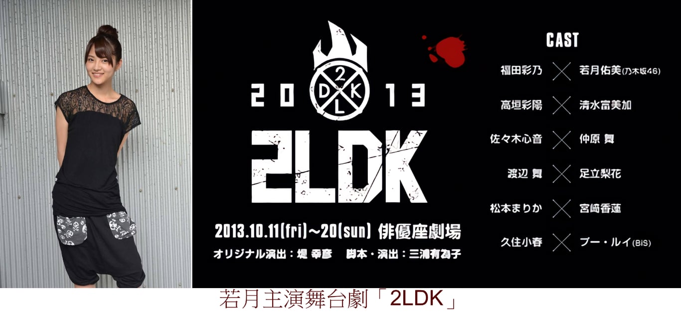 若月單獨參演堤幸彥名作「2LDK」的舞台劇版「『2LDK』-2013-」,作為公演初日的主角登場,為團隊打開舞台劇界的大門,成為日後大舉進駐的先導者。