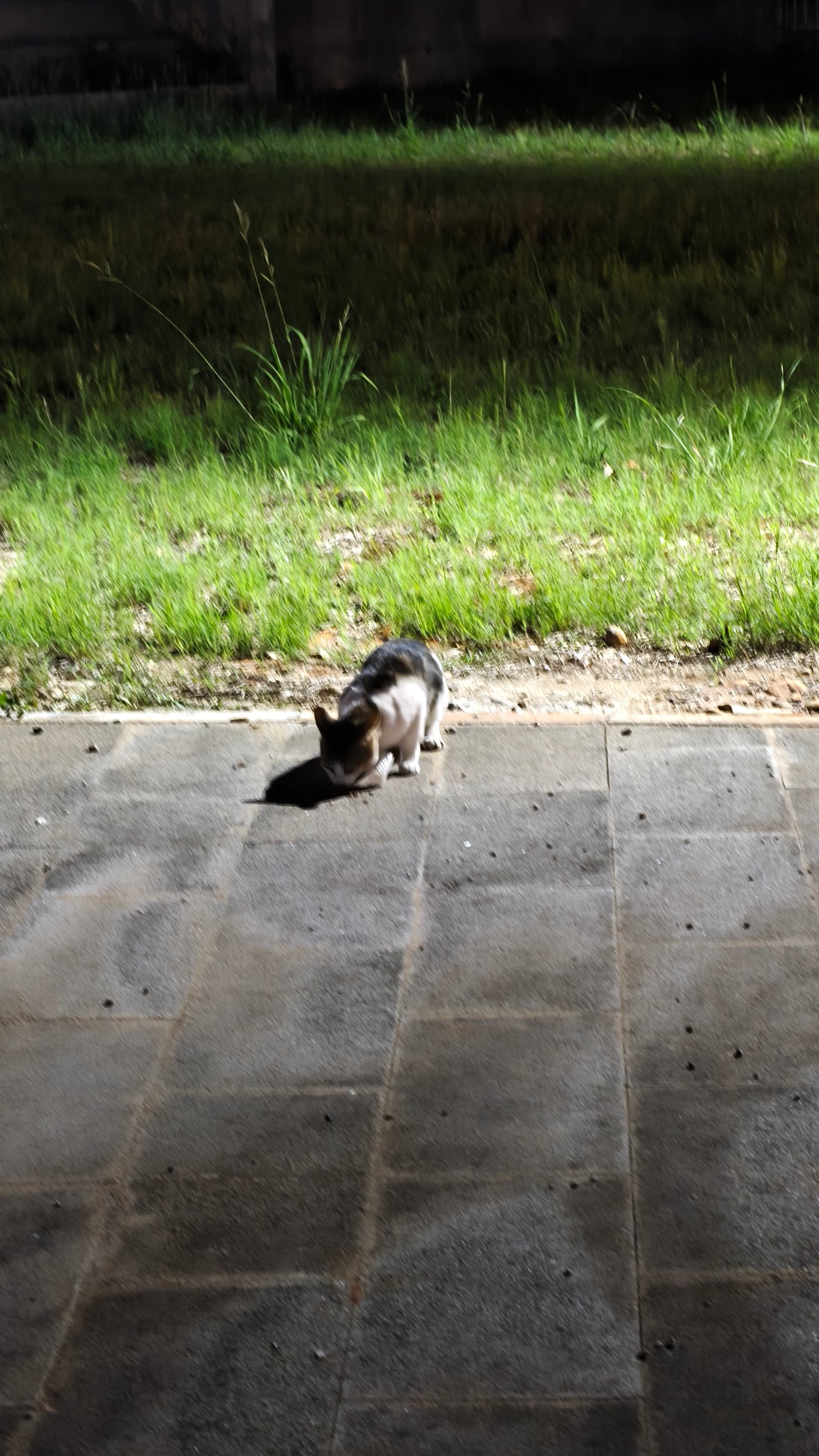 這幾天若有散步到公園,都會看到牠,我幫牠取名叫「小花」,很普通卻也容易上口的名字。然後為牠奉上一點乾糧作為見面禮物。