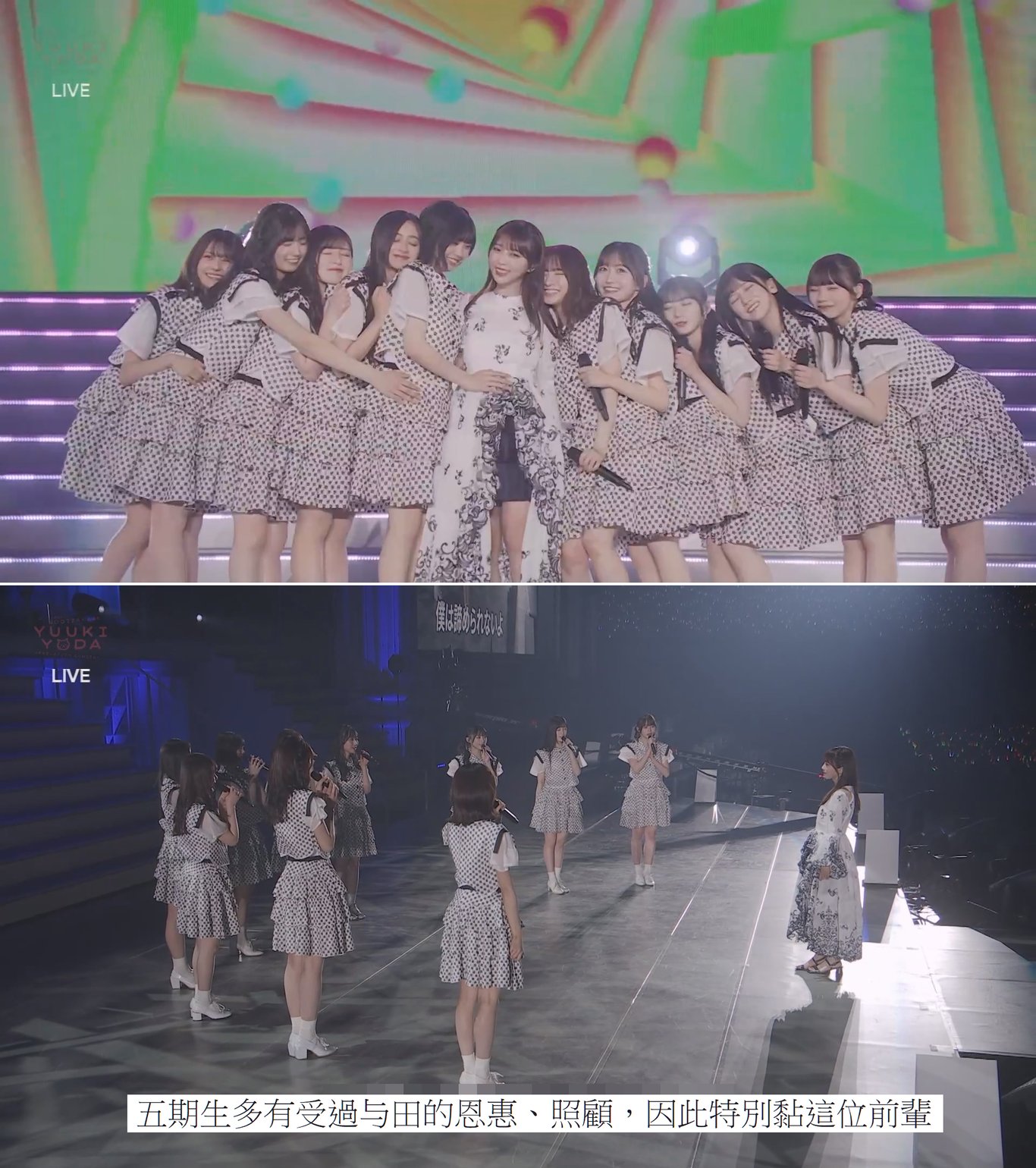花花便舉例在自己的畢業公演中,与田也在Encore時段結束回返主舞台時,錯誤走到一期生的陣型中。