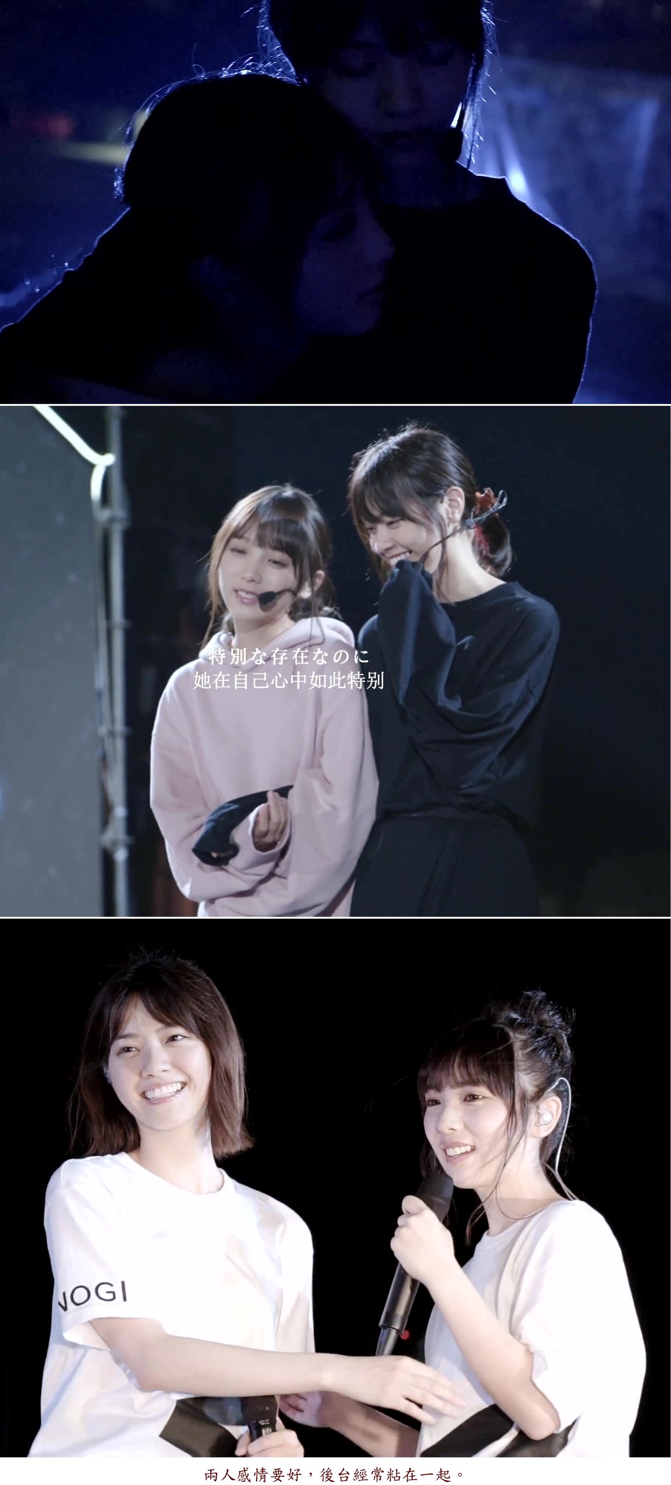 要說白石之於桃子,其實更像一位在她身前帶領、以身作則的導師,至於心靈的避風港,卻是齋藤飛鳥來得更合適。桃子自己都曾不止一次說過,飛鳥是聽她傾訴最多的人。難得的是向來與人保持距離的飛鳥,卻主動關心桃子,在很長一段時間裡,二人幾乎出雙入對。