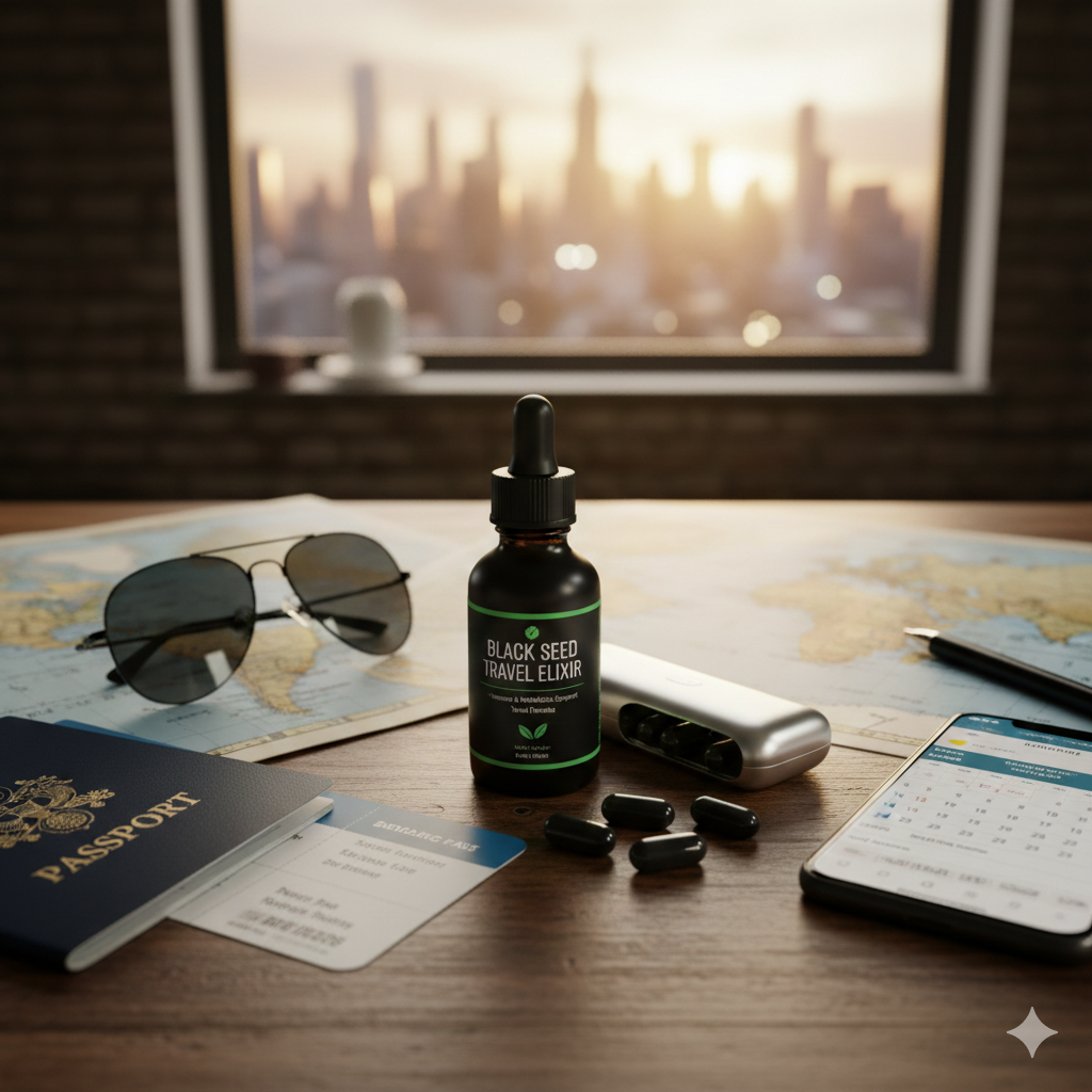 A: 有輔助作用。黑種草油的抗氧化能力能減緩因時差導致的壓力賀爾蒙波動,穩定神經系統,幫助身體更快調整生物鐘。