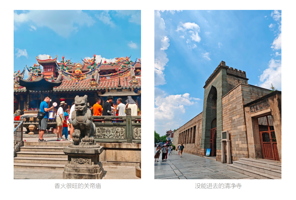 吃饱喝足,下午又前往下一个地点:关帝庙。人同样多到爆炸,求签的人比天后宫还要多,庙里的赛博烧纸等现代化装置看得人发愣。但关帝庙内部的顶棚是全封闭的,身处其中的感受并不算舒服,于是草草逛完溜走。