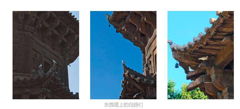 在路上遇到了很多的小动物,甚至在东塔西塔上看到了成群结队的白鸽(应该是?),钻进屋檐下,又展翅飞到更上层,在石头和缝隙间抖抖翅膀梳毛,底下的人类拼命抬头看,也只能看到它们洁白的几片羽毛。