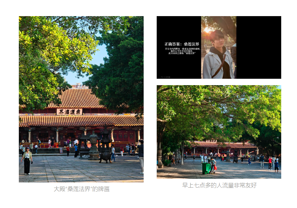在开元寺面前的紫云屏站定,打开了《来去泉州》的音频。现场也有很多讲解员带着三两游客往前走,但游览速度都比我听音频要快得多,我就这么在进门的大殿晃悠了十多分钟。