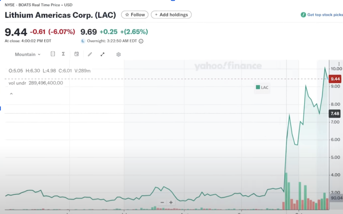 我們先來看看具體發生了什麼事。 9月24日這天,對於Lithium Americas這家公司,股票代號LAC的股東來說,無疑是夢幻的一天。股價從開盤就如同火箭般躥升,最後收盤鎖定在驚人的95%漲幅。