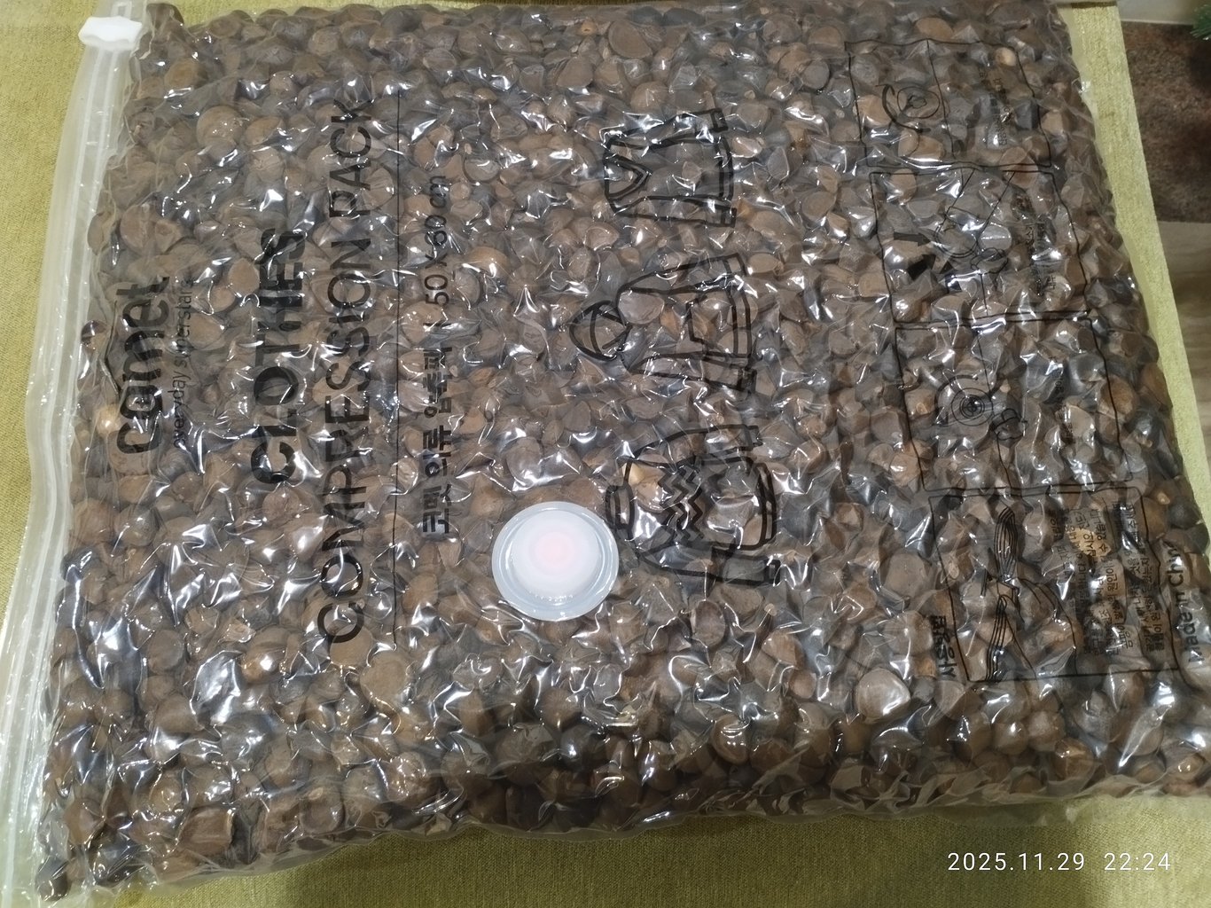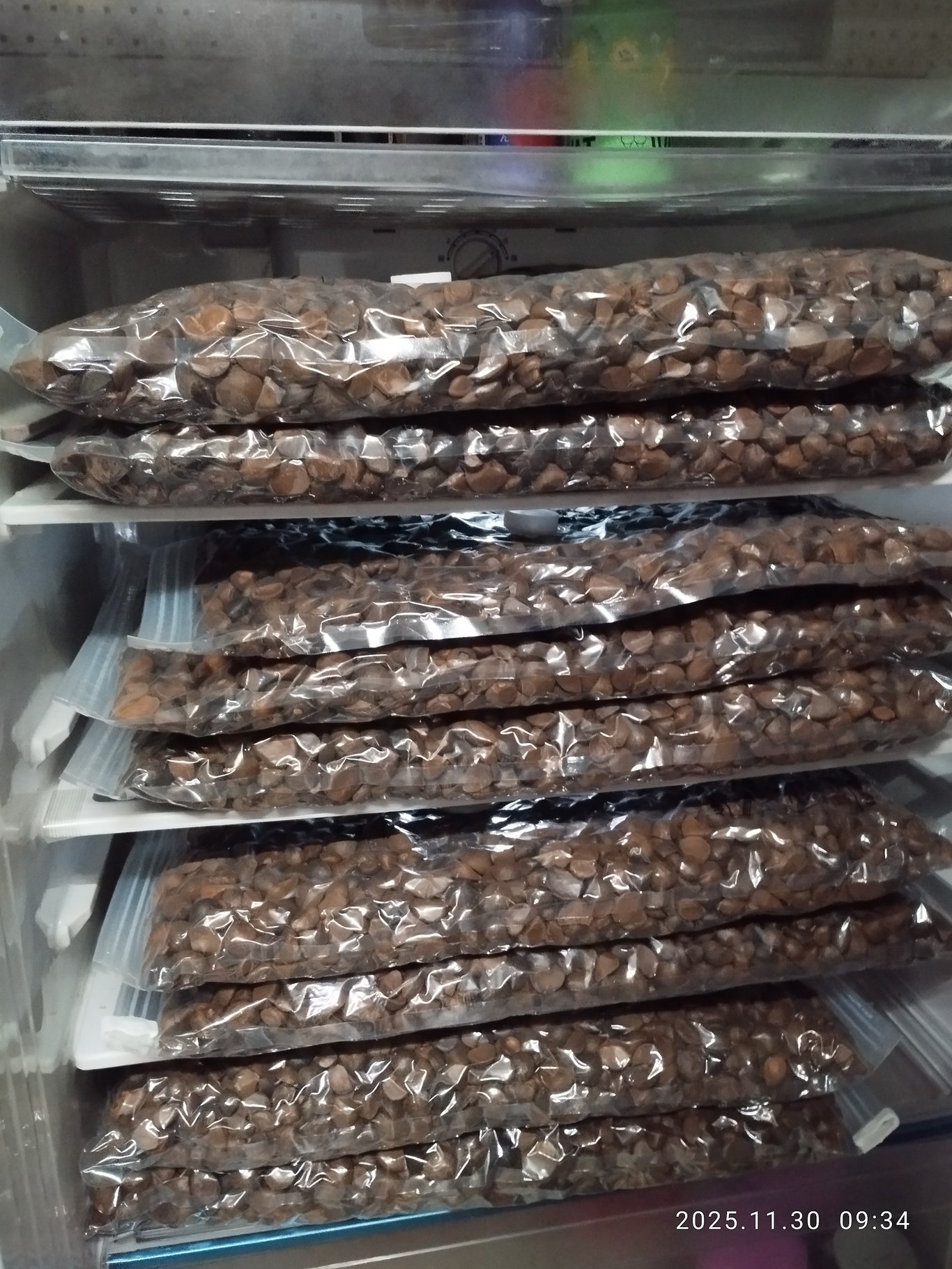 又賺了一周的好天氣,冬天常有冷空氣報到,但還算好天氣有太陽可以曬! 當你需要太陽幫你的時候,你會特別的希望每天都是好天氣,人就是這樣,為了盡快曬好苦茶籽,希望每天都是好天氣;苦茶籽有兩層殼,剝好第一層果皮必須繼續曬,前輩教導我們必須曬到第二層裡面的果仁變硬,用指甲無法穿刺,再點火測試是否很容易燃燒,這樣的熟度才算合格,如此算來以中部的天氣,至少需要一個月的時間曝曬,雖然冬天曬太陽是一種幸福,但也是很辛苦的,這次曬果幸好有中女的姊姊、父親,還有園主的二姊大力幫忙,否則上班族的中女真無法達標。第一批的日曬本周總算達標了,因為採用赤柯山的餅式蒸氣榨油,第一次沒經驗太晚預定,已經排到明年1/27了,只好先用收衣服的真空壓縮袋抽掉空氣,再放到冰箱冷藏保存,等待明年1/27的榨油吧!