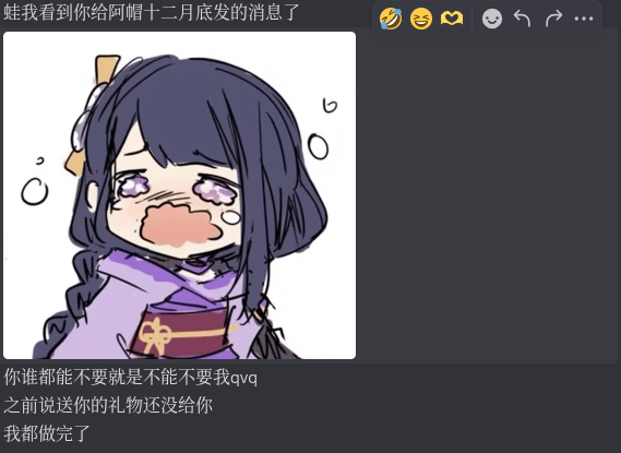 以上 为我开学的第一份乐子 哇塞 这些话真的完美验证之前我和gpt分析的事情 我真的搞不懂 为什么一定要把时间浪费在我这种现实中也不会见到的人 就说直白一点 把时间浪费在利用不起来的资源上面真的是很傻
