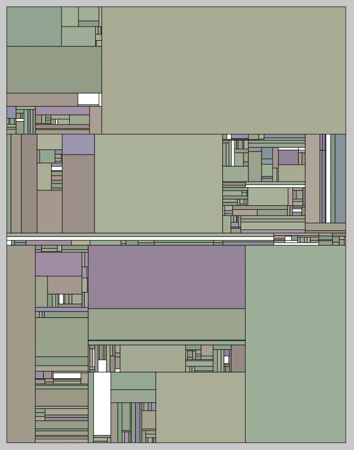 一開始做了許多方形的區塊分割,看到瀏覽器上出現越來越多顏色的方格時,腦中突然閃過一張國高中美術課經常會出現的圖片,就是皮特·蒙德里安(Piet Cornelies Mondrian)的〈紅、黃、藍、黑的構成〉這幅畫,整幅畫運用最基本的元素以及最簡單的三原色,卻創造出極簡但卻純粹的美感,也在未來的很多建築、衣服、家具、飾品上都看得到此風格的痕跡。