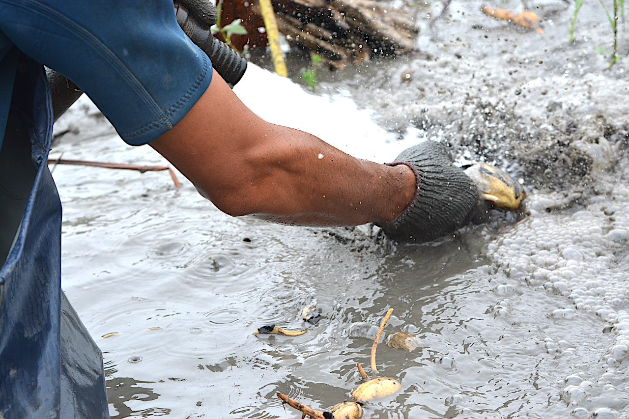 穿梭蔗田除雜草 徒手採藕維持外觀