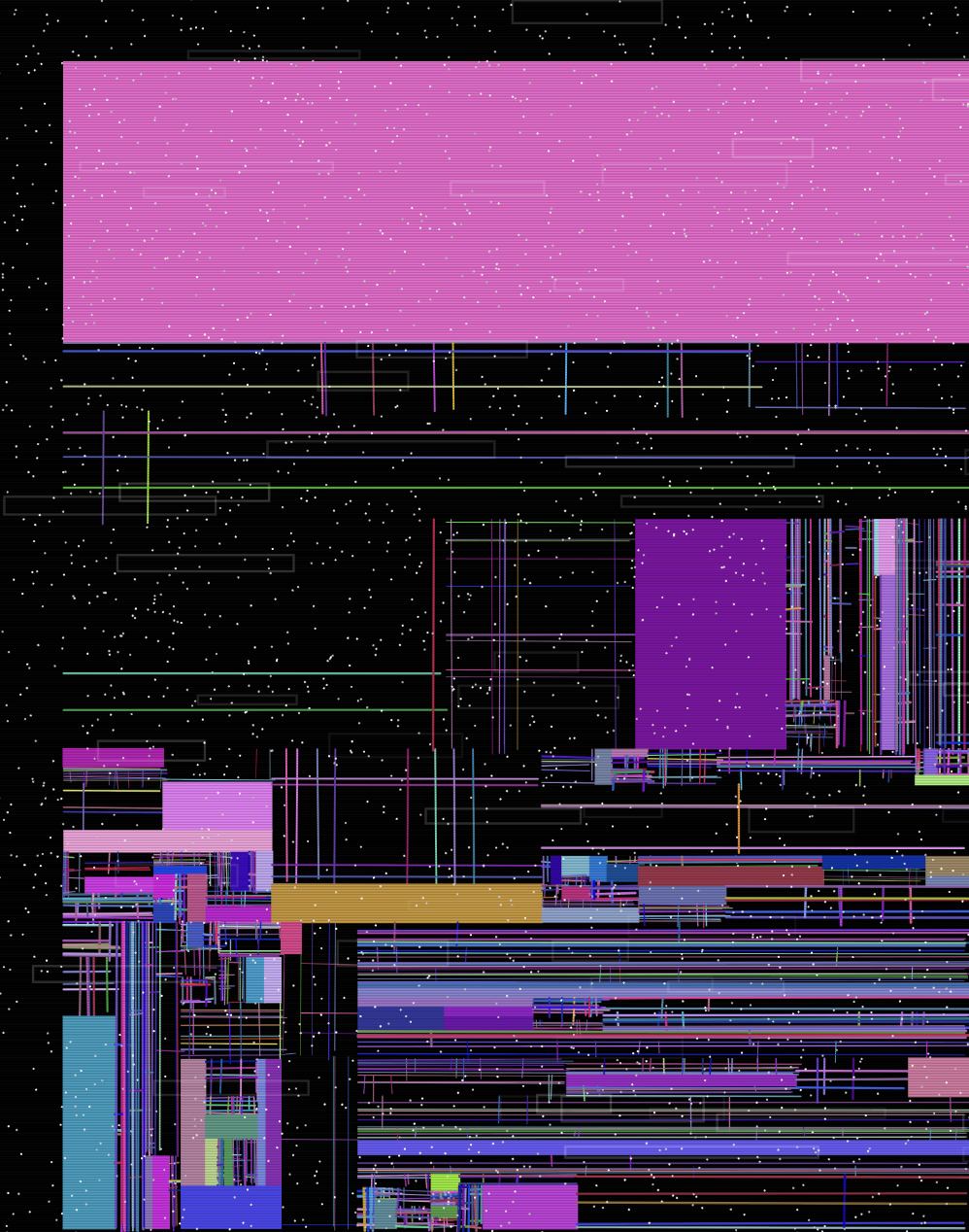 在製作區塊分割時,我想到可以把原本乾淨的幾何畫面,轉換成電視壞掉的錯頻感。原始版本以規則的矩形遞迴與垂直線條為主,在加入了隨機干擾與閃爍邏輯後,每個區塊的線條方向與顏色都有噪訊偏移,模擬顯示器的紅藍錯位與色差;畫面上層再覆蓋掃描線與白色雜訊點,營造出訊號不穩、畫面抖動的氛圍。透過這些不規則的干擾層,使畫面從秩序中的平衡變為失真的節奏,像是理性世界被電流撕開的一瞬間。