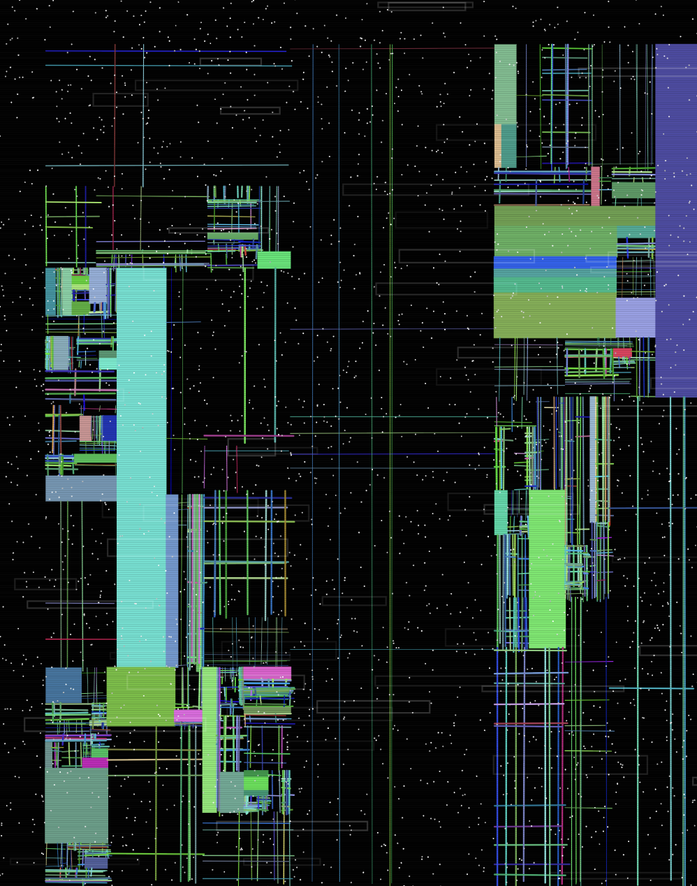 本週的區塊分割以遞迴邏輯、隨機參數、與顏色控制三者疊加出有秩序的視覺結構,讓我想到皮特·蒙德里安著名的作品《百老匯爵士樂》,以有層次的紅、藍、黃方格表現紐約市區的街區規劃,以及具隨機性的爵士音符在城市中跳動的樣態。