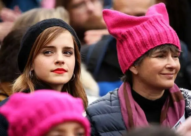 2017年,特朗普的 pussy 言论一经曝光,就引起了美国女权主义者的迅速反应,女性们打出 “pussy grabs back” 的口号,并在游行时戴上了猫耳帽,羞辱的语言被她们重新缝制成了反抗的旗帜。