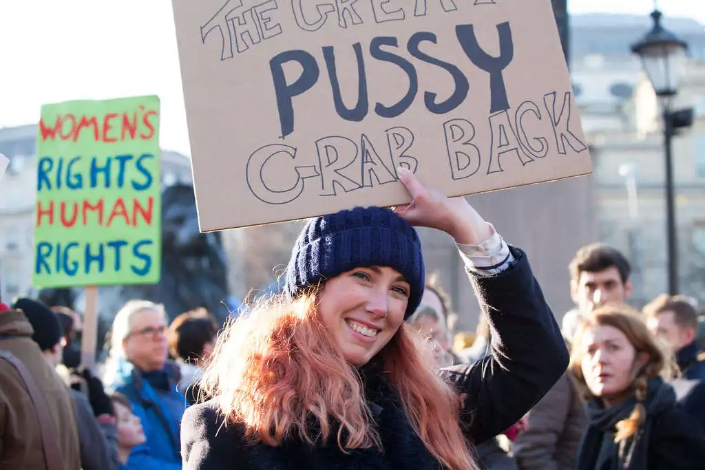 2017年,特朗普在一个被曝光的录音中夸口说,作为有权势的男人,他可以随意“grab them by the pussy(随便抓她们的阴部)”。