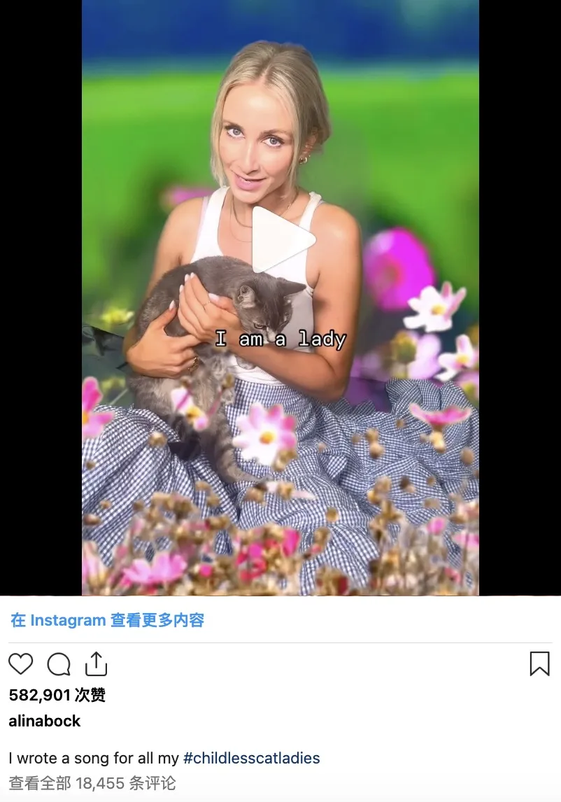 有趣的是,“无孩爱猫女” 背后有着非常明确的西方文化背景。泰勒·斯威夫特(Taylor Swift) 曾于去年9月份,在 Instagram 上以 “无孩爱猫女” 署名发贴,用以回应当时美国共和党候任副总统 JD·万斯(JD·Vance)的言论 —— 他曾将民主党人士描述为 “一群无孩爱猫女”(childless cat ladies)。