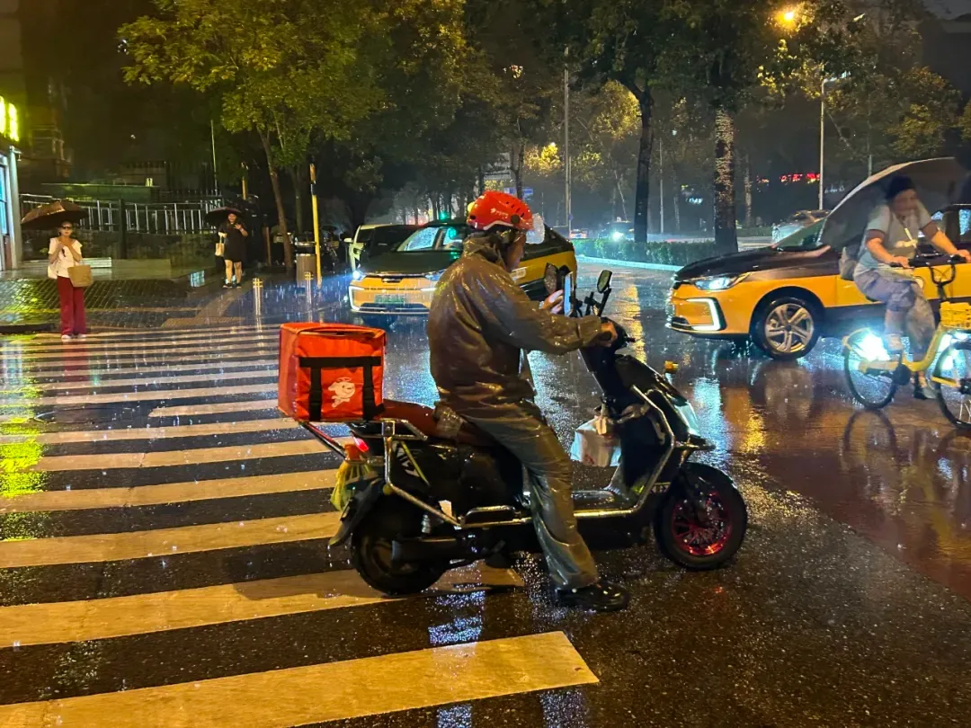 此外,暴雨天气对外卖骑手的影响也十分显著。这不仅是因为骑手在暴雨中工作有更高的风险,容易遭遇交通事故,更是因为,在暴雨天气,城市居民对外卖的需求量会剧增。在暴雨天气,外卖骑手面临的风险包括但不限于:因长时间淋雨而生病,脚长时间浸泡在不干净的水中带来的健康风险,在雨天发生滑倒、翻车、撞车等意外。上述风险会因缺少高质量的防雨装备(比如能够抵挡暴雨的雨鞋、雨衣)而加剧。同时,暴雨天气也会带来手机进水、电瓶车电瓶泡水等问题,带来进一步的财物损失。