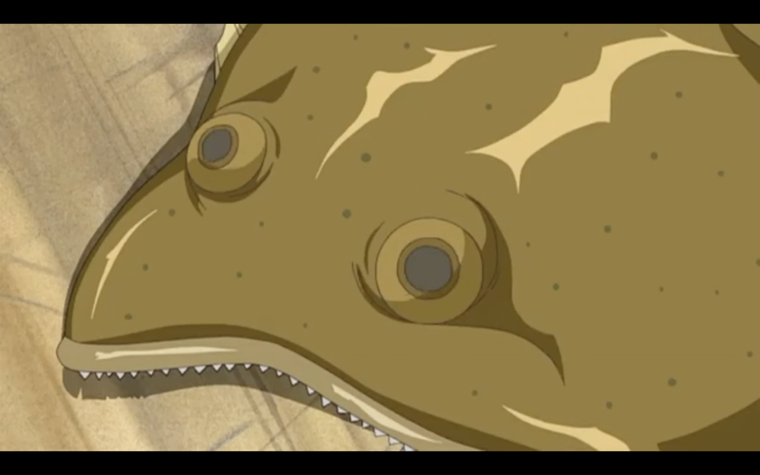 这种眼神让我联想到童年阴影 —— 动画《怪谈餐厅》里的一集《ひらめになれ》:女孩子把同学变成了比目鱼,后来在鱼店的砧板上发现那条会说话的比目鱼说出了类似「你竟敢把我变成比目鱼」的台词,最后还出现要把“她”当成鱼片处理的恐怖反转。其中比目鱼凝视的镜头,成为了我的童年阴影。那条在砧板上的比目鱼,空洞又充满指控的凝视,与当下被批评的 Gen Z stare 有着惊人的相似
