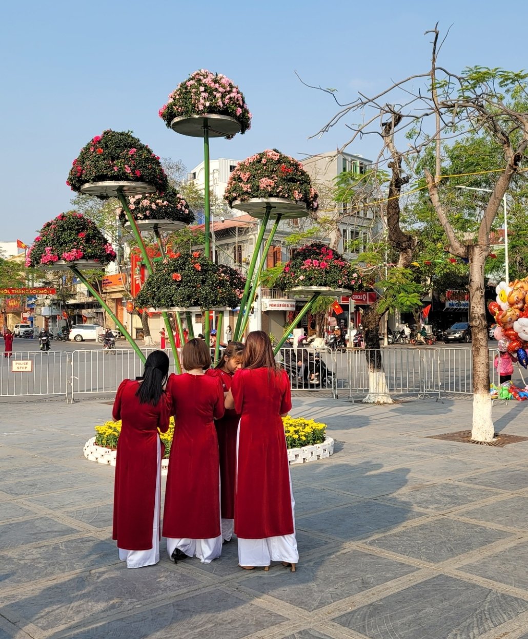 過年時,海防的越南女性穿上了紅色傳統的奧黛áo dài