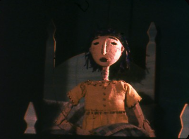 嘉妮的玩偶來自不同素材,有平攤挪移的,也有站立舞動的,而戲偶也並不全然是那迷離敘事的行進核心,更重要是她混合了許多不同的物件,好像坐在地板上把玩具箱與針線盒打散的小孩,布娃、鐵偶、紙人、鉛筆線、印花布全然給她攪和外一起,而從當中抽出一條線頭來,拉著、拉著、竟扯出了歲月這頭犄角獸來,一會兒是童言童語,一會兒又是滄桑道盡。隨著影片行進的其實是內在之流,是生活的蹤跡,彷彿主角其實是正在鏡頭前方的觀眾,看著那一幕幕童真與滄桑綴連的劇場,如此綺麗又如此哀傷。