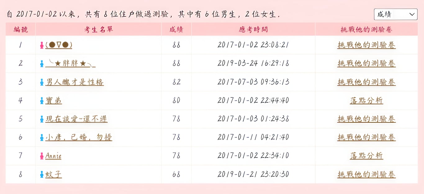 我先生2017年測驗。